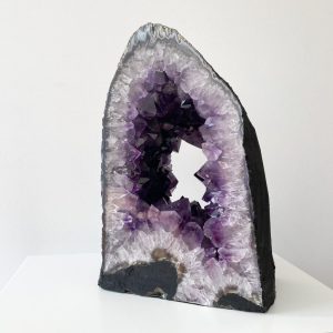 La amatista es un cuarzo que se encuentra en forma de drusas o geodas, las cuales son aglomeraciones de cuarzos en una misma base, son ecosistemas de cristales, cargados de mucha energía, no hace falta el procedimiento de limpieza ni el de recarga de energía ya que ellas son una fuente de energía y se renuevan solas.