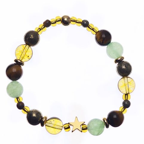 Combinación de: Citrino, Pirita, Ojo de tigre, Aventurina Verde.
